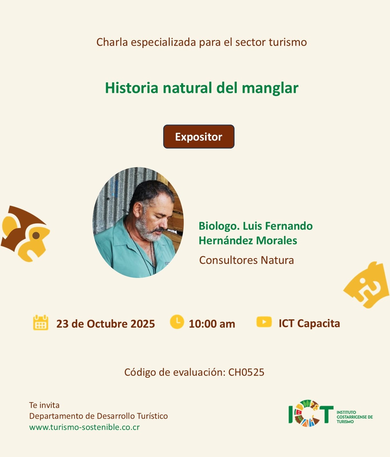 El Instituto Costarricense de Turismo por medio de su plataforma ICT Capacita te invita a participar del webinar: "Historia natural del manglar"